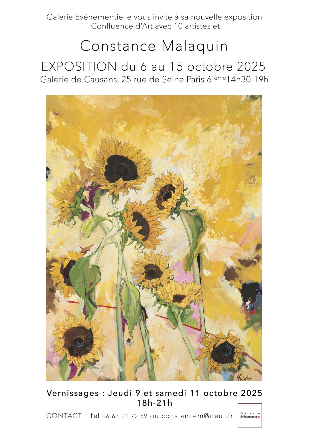 Exposition Collective de 13 artistes dont Constance Malaquin avec ses Fleurs sur cartons alvéolés grand format.