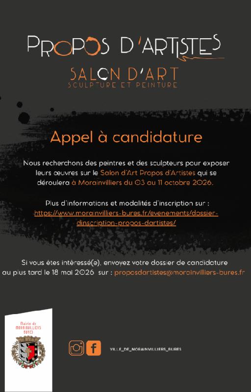 Mai 18 0 h 00 - 23 h 59 Salon d’Art Propos d’Artistes Salle des Loisirs de Morainvilliers Place de l'église, 78630 Morainvilliers Détails des Évènement Recevoir l’Itinéraire à suivre