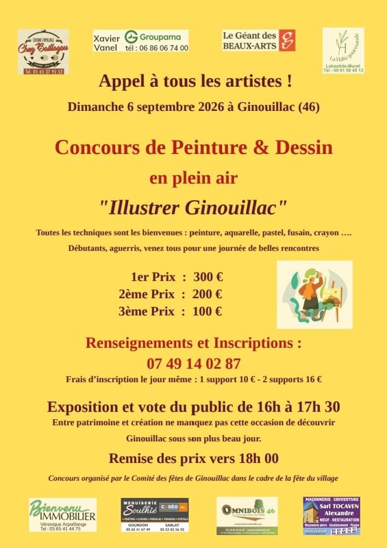 La troisième édition du concours de peinture & dessin "llustrer Ginouillac" aura lieu le dimanche 6 septembre 2026 Artistes confirmés ou amateurs, venez capturer la Lire plus ...