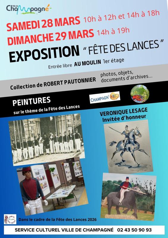 Mar 29 28 mars 2026 - 29 mars 2026 Exposition sur la fête des Lances Au moulin 72470 Champagné Détails des Évènement Recevoir l’Itinéraire à suivre