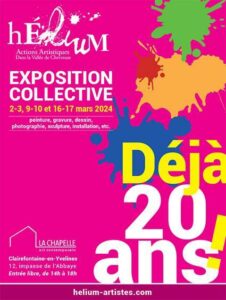 Déjà 20 ans ! Exposition collective 2-3, 9-10 et 16-17 mars 2024 La Chapelle, Clairefontaine-en-Yvelines Entrée libre, de 14h à 18h Les 2-3, 9-10 et 16-17 mars 2024 aura lieu la prochaine exposition collective organisée par l’association Hélium, et qui coïncidera avec les 20 ans de l'association. Elle se tiendra au centre d'art contemporain La Lire plus ...